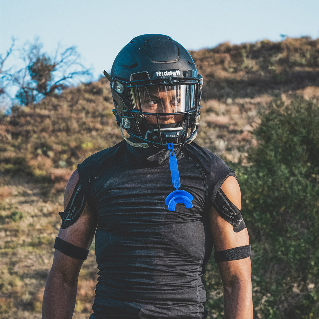 Introducing the Nxtrnd One® Mouthguard. Featuring a removable silicone strap and comfortable X-pattern bite pads.
